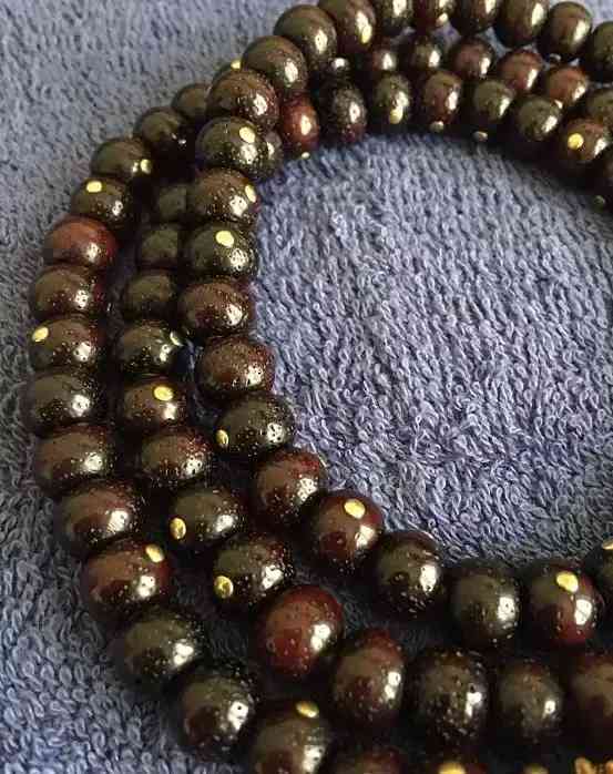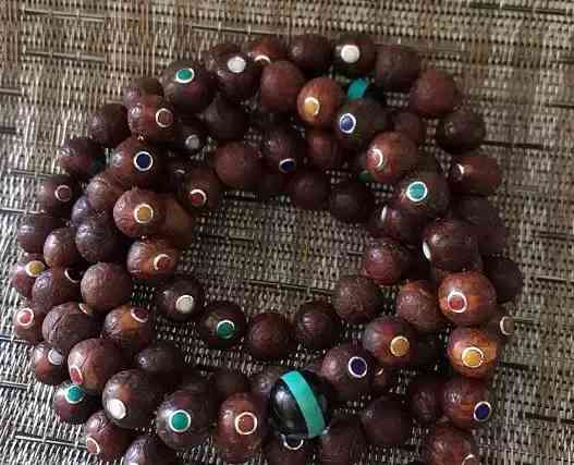 其实凤眼镶嵌,这在藏式的佛珠中倒也不少见啦,很多藏民会将一些眼不正、歪眼、漏眼等等毛病的凤眼挖到眼仁,然后用佛教七宝中的宝石(珊瑚、南红或金银器等)填补镶嵌上去,这样即美观又富有宗教特色。