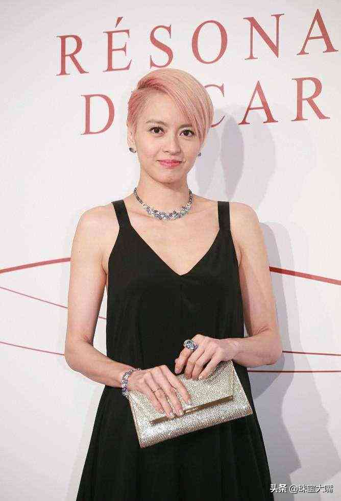 黑色背带低V连衣裙让梁咏琪看起来很优雅,不过这一身衣服怎么都靓不过她身上这一套价值千万的首饰了。戒指、手镯、项链还有耳钉都是同一个系列出品,看上去独具特色,而且雍容华贵。