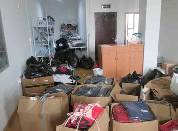 据介绍,2017年4月,平湖市市场监管局接到消费者举报,称自己在淘宝上买了一件假鳄鱼牌衬衫。循线摸索,平湖市市场监督管理局稽查大队通过网店注册信息,在平湖一个简陋的小店内,发现了满满当当铺了一地的“国际知名品牌”。