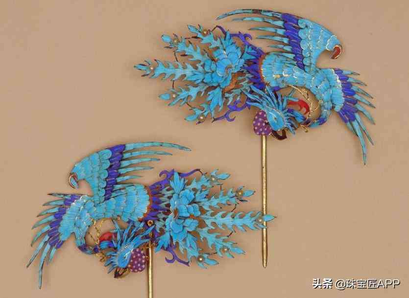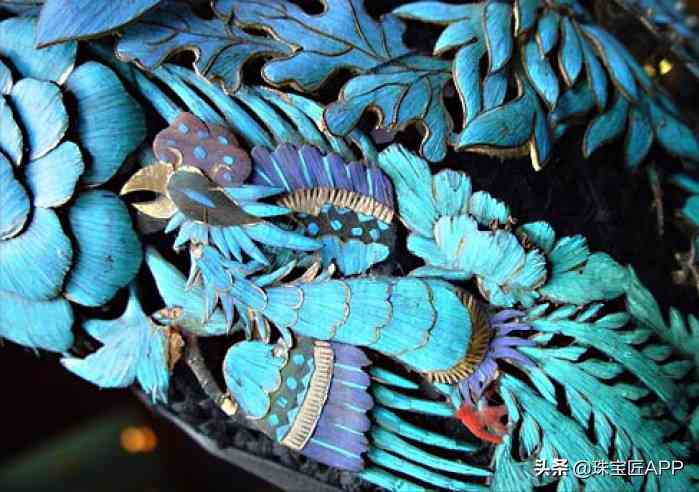 最传统的点翠工艺,要求使用的一定是翠鸟之羽,只因据说翠羽色泽可以百年不变,光泽如故。