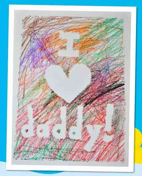 画纸上贴上“我爱你,爸爸”,然后让孩子随意涂鸦吧,涂好后撕下贴纸就可以啦~