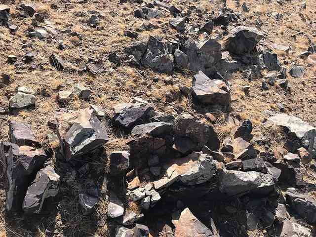 一眼望过去虽说不是非常的平坦,但也没有此起彼伏的大山,山丘的顶部呈现出黑灰色的一片,当你走近时才能发现,这些黑灰色的物质全都是因为铺满在山顶的矿石。
