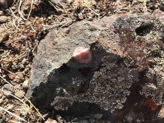 能生长在这些山丘之上也算得是一处景观了,山顶表面矿石中的玛瑙不是特别多,但也不排除地下会有好料子。这种天然形成的粉红色玛瑙比较罕见,其中一些玛瑙看起来和南红玛瑙还有得一拼。