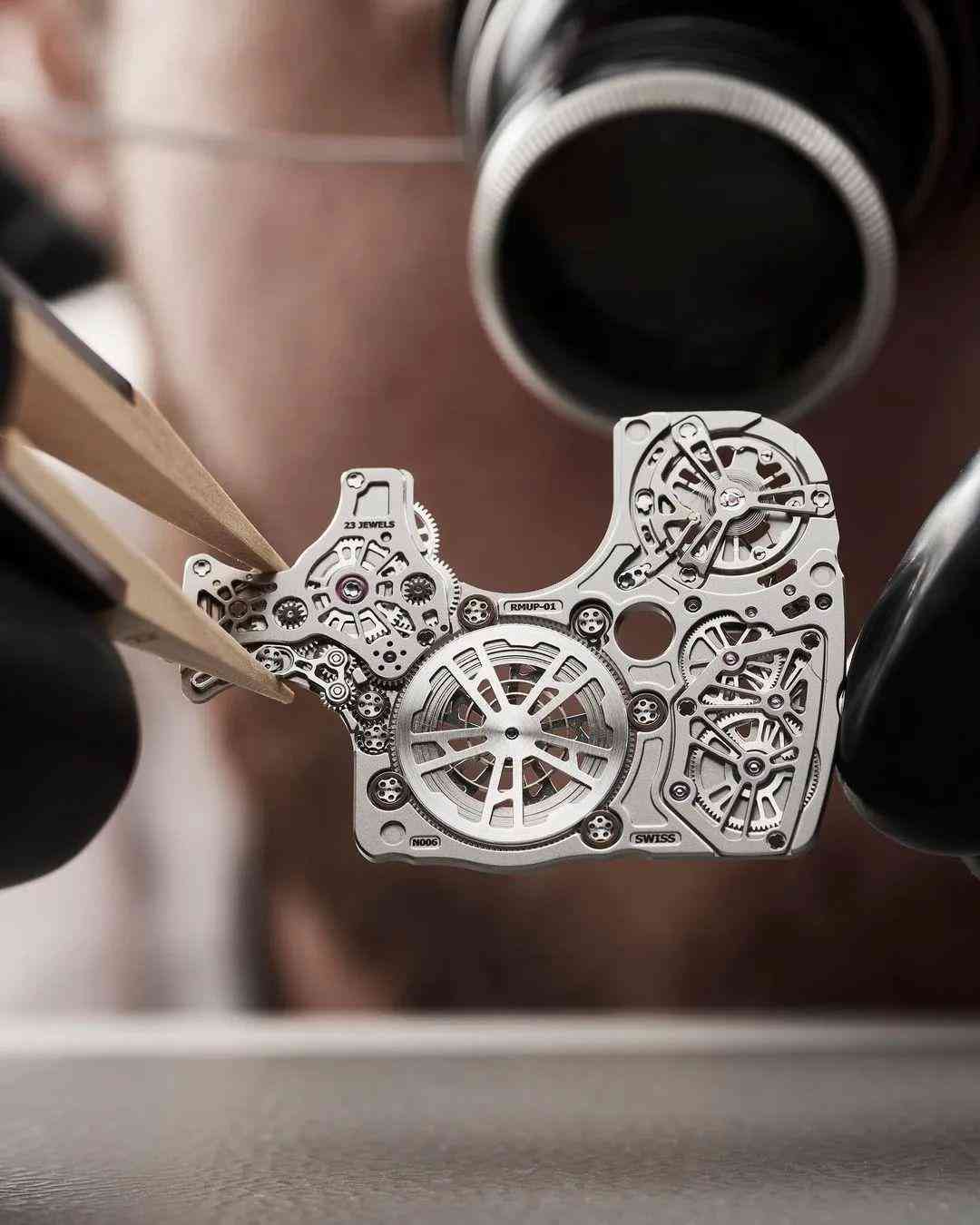 Richard Mille产量极低,大部分都是限量版。所以这里几乎没有所谓的标准零件,机芯所使用每一枚螺丝的精确尺寸、每一枚齿轮和细节,都需要经过单独的设计制作。
