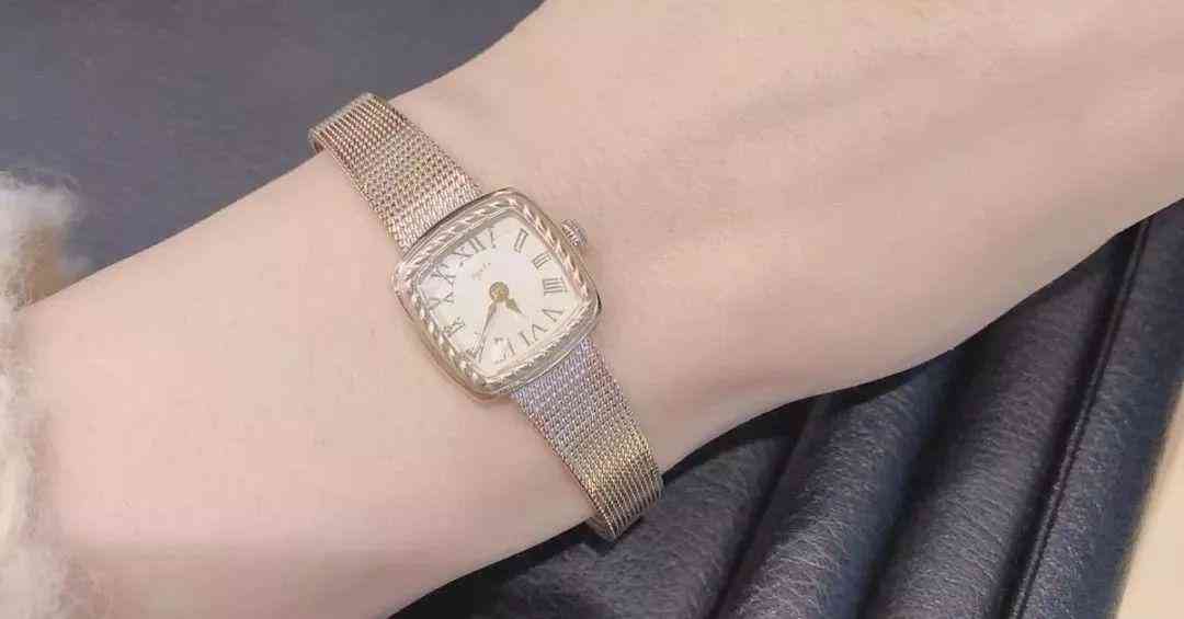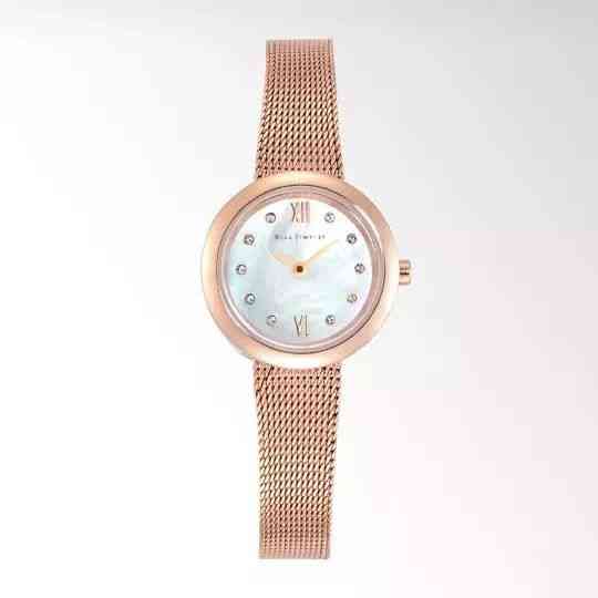 还有这款珍珠母贝的金属手表,玫瑰色的很复古,细细的表带很适合夏天。