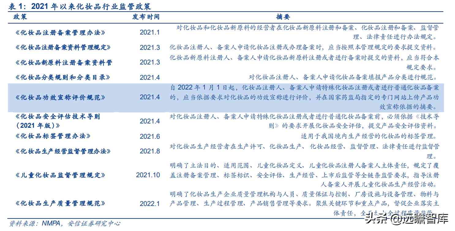 自2021年年初以来,国家多次颁发化妆品相关政策,抬高合规成本。