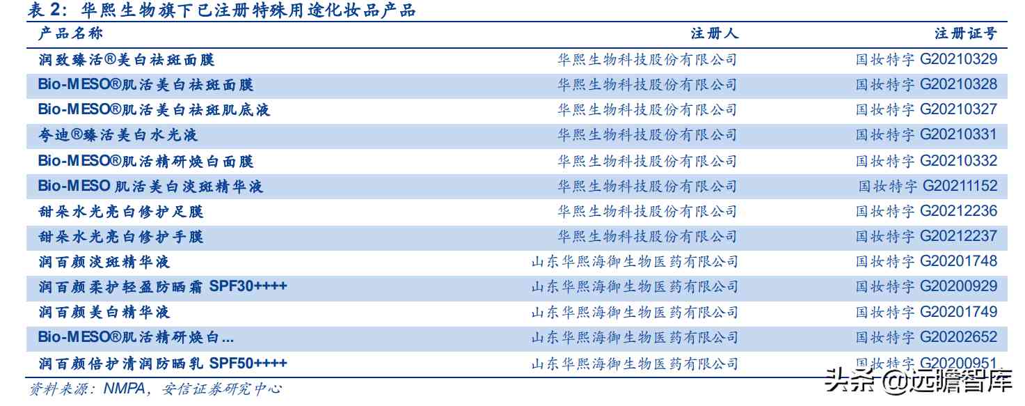 华熙生物强科研技术巩固公司护城河,在平台型布局思维下,依托于公司的生物活性物和生物科技平台所研发的新成分和新技术,未来华熙可持续迭代产品及新品牌,不断扩大市场空间。