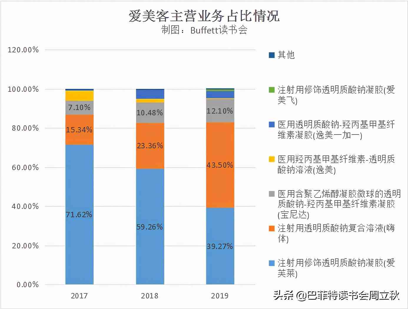 爱美客,前身北京英之煌生物科技有限公司成立于2004年6月,目前99%以上的收入来自医美产品,包括医美填充剂和埋线产品,公司是国内生物医用软组织修复材料领域的创新型领先企业,立足于生物医用材料的研发和转化,致力于重组蛋白和多肽等生物医药的开发,已成功实现注射类透明质酸钠系列产品及聚对二氧环己酮面部埋植线的产业化。
