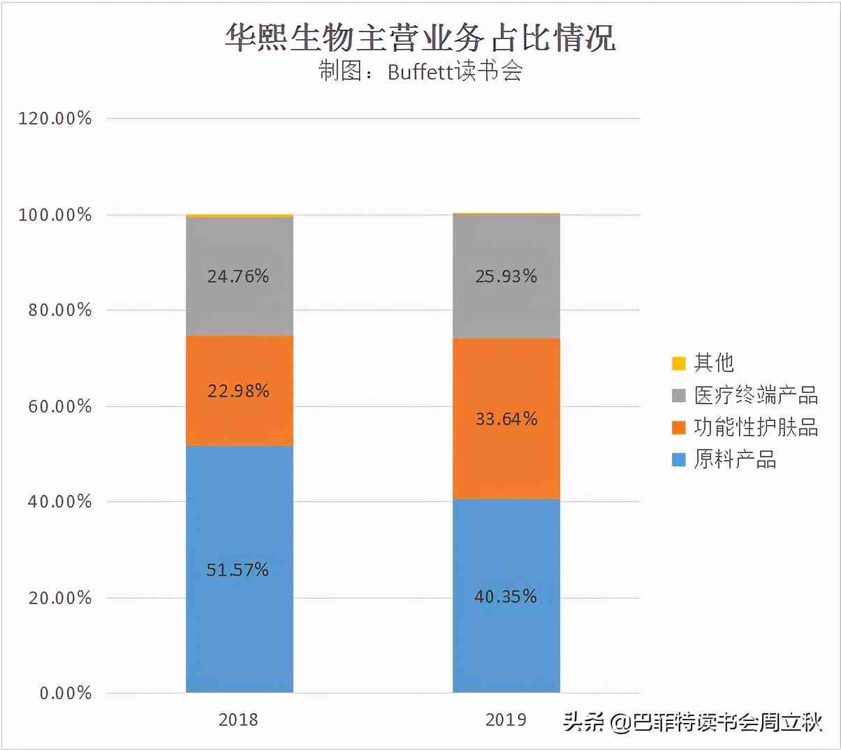 华熙生物,公司从HA原料业务起家,是目前全球透明质酸原料龙头企业,也是三家公司中一个不仅有HA原料生产能力+满足自给自足,并且拥有医药级原料业务的企业,掌控HA下游生产企业的原料供应。(HA,美容类透明质酸,玻尿酸)公司凭借在原料市场的优势,迅速实现透明质酸产业链下游的延伸,透明质酸终端产品种类齐全,不仅涵盖了传统的透明质酸终端种类如医美、眼科、骨科、外科,还拓展到功能型护肤品领域,并且在试水食品、宠物、头发、身体、计生等多个领域。