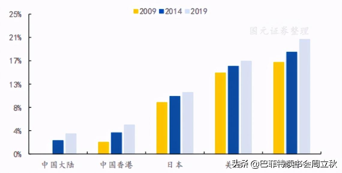 根据艾瑞咨询的预测,2019年中国医疗美容市场规模达到1769亿元,增长率放缓至22.2%;2019年中国医美用户1367.2万人,预测2023年医美用户达2548.3万人(19年至23年CAGR为16.8%)。中国在2017年已经成为全球第二大医美市场,亦是全球增速最快的国家之一。有望在2021年超越美国,成为医美大市场,于2023年市场规模达到3115亿元。2014年,医美在中国大陆渗透率仅为2.4%,而同期,医美在中国香港渗透率为3.8%,在日本渗透率为10.3%,在美国渗透率为15.7%,韩国是全球医美渗透率高的国家之一,医美行业在韩国政府的支持下发展为国家支柱产业,在此背景下,2014年,韩国医美项目渗透率高达18.2%。过去五年,中国医美项目渗透率有了显著提升,从2014年的2.4%上升到2019年的3.6%。但与美国、日本、韩国等地区仍有显著差异,未来,中国医美项目渗透率增长空间广阔。