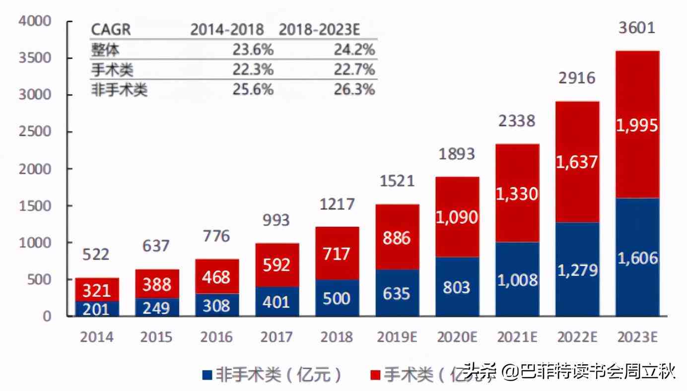 1、市场空间足够大,国内市场才刚开始。根据国际美容整形外科学会(ISAPS)和相关调研统计数据,2017年全球医疗美容总治疗项目量为2339万例,全球医疗美容服务市场规模为1258亿美元,预计2018-2022年复合增速为7.2%,到2022年将进一步增长为1782亿美元,折合约为1.2万亿元。