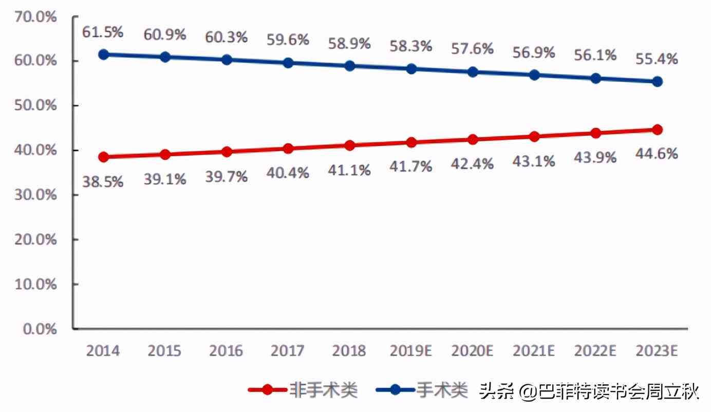 2、非手术注射类占比快速提升。庞大的医美市场根据是否需要手术又分为手术类和非手术类(轻医美或微整),其中以注射类为代表的非手术类项目由于恢复时间短、价格及风险较低,近年来增速相对较快,2018年非手术类项目市场规模预计510亿元,2013-2018年复合增速达26.09%,高于整体医美市场增速,预计2022年非手术类项目在整体医美市场的销售占比达到43.71%。