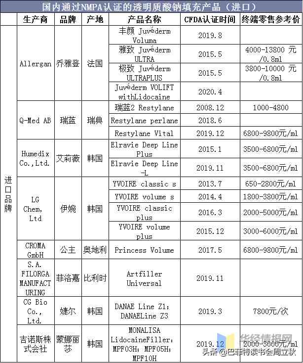10、目前所在机构有用到爱美客的宝尼达作作为替代品。在上海某化妆品公司的朋友同时反馈,在其代工的面膜产品中用到了小分子HA,国产的主要是华熙生物和山东焦点,就品质而言,QPFC日本丘比的更好。