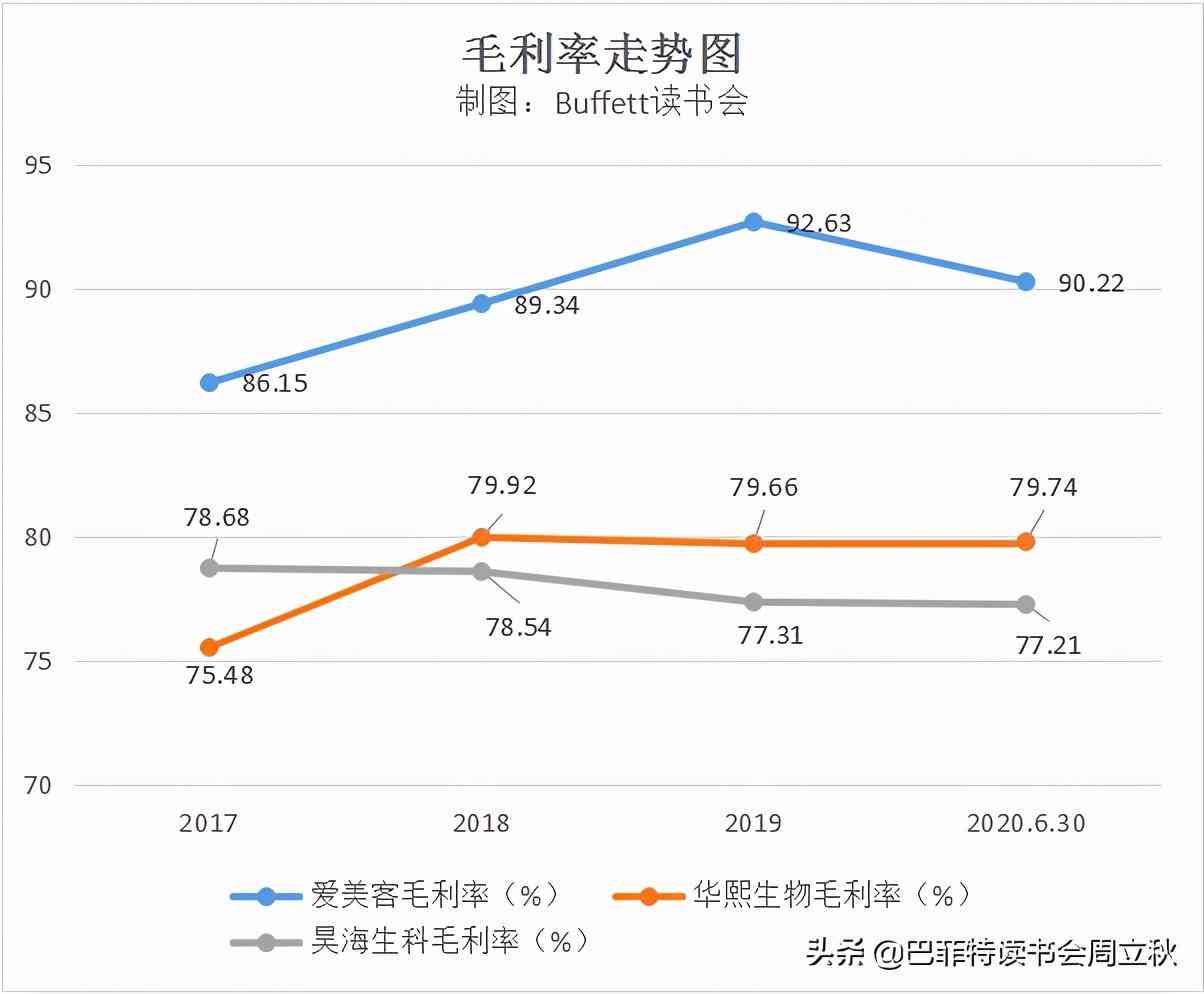 爱美客2020年上半年毛利率为90.22%,同比略有下降;