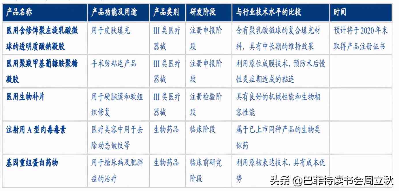 3)多生物医用材料研发孵化失败的风险:公司在医美注射类透明质酸领域推出多款产品,并不断孵化其他领域的生物医用材料运用于医美领域。若未来相关技术未能突破,研发投入未能获得相应的回报,将影响公司长期可持续发展及盈利表现。