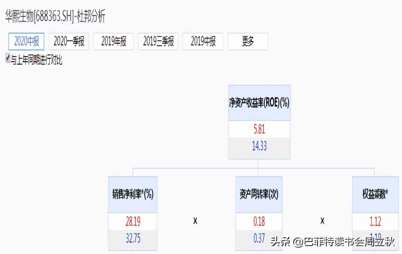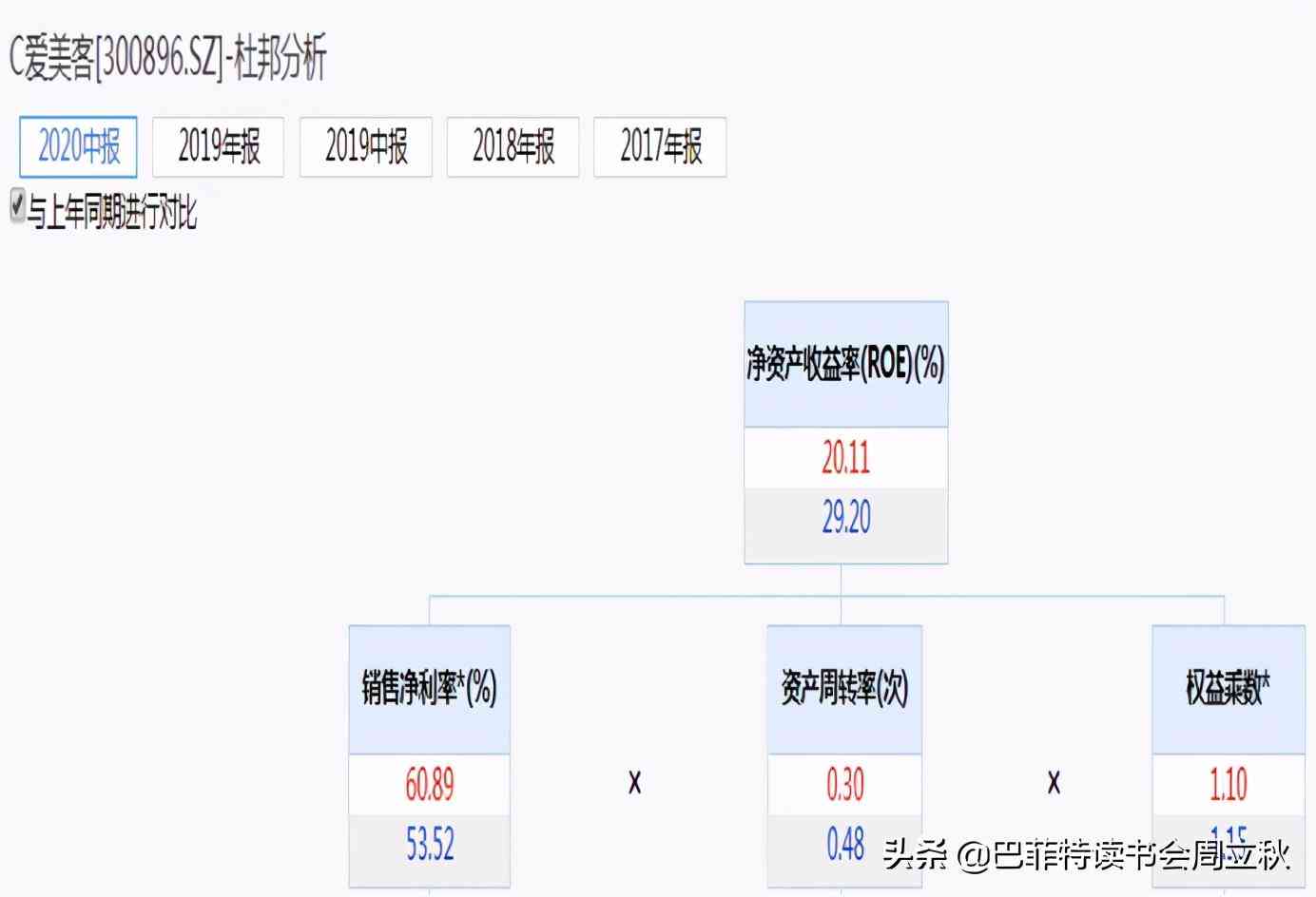 爱美客2020年上半年净资产收益率为20.11%,同比下降9.09个百分点,下降主要的原因就是资产周转率有所下降,这和疫情有关,下半年应该可以恢复。