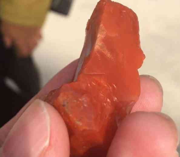 红碧石又称乌石,也是石英类,与南红矿物是伴生的关系,但红碧石不能作为珠宝的材料,它质地发干且不透光,无玉性。用强光透射不透光。