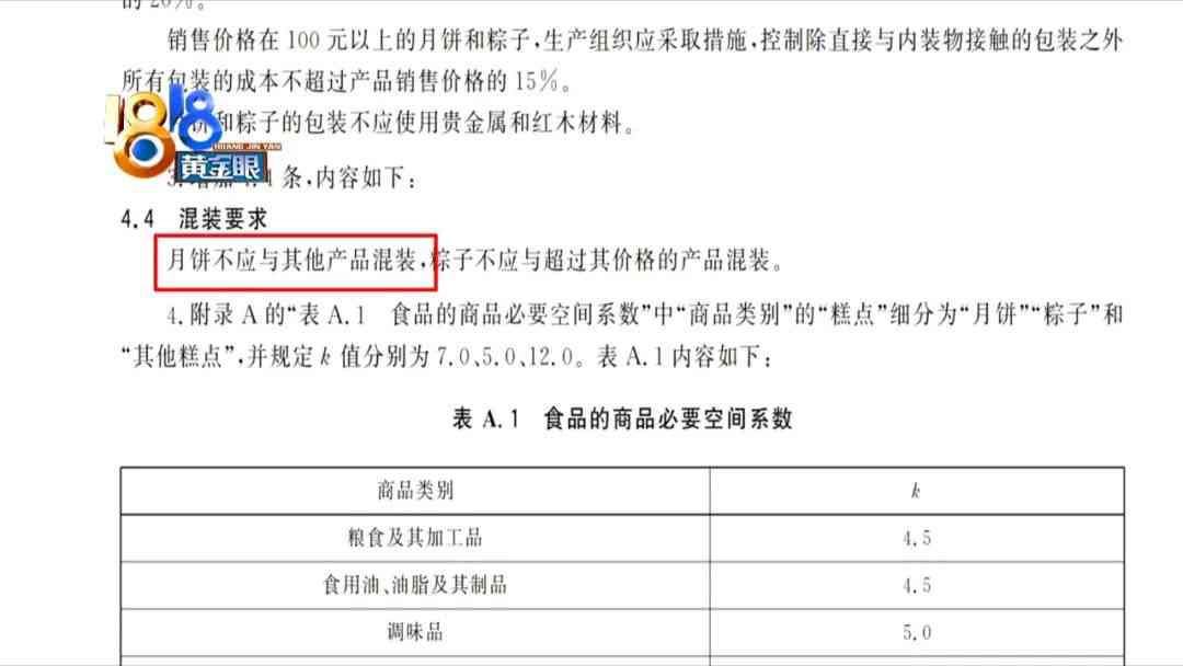 记者查询了一下,今年5月,国家市场监管总局会同工业和信息化部等部门,制定发布了《限制商品过度包装要求 食品和化妆品》国家标准第1号修改单,从8月15号起实施。其中明确规定:月饼不应与其它产品混装。后来,厂家的陈女士联系记者,表示企业遵循的的确是这条规定。