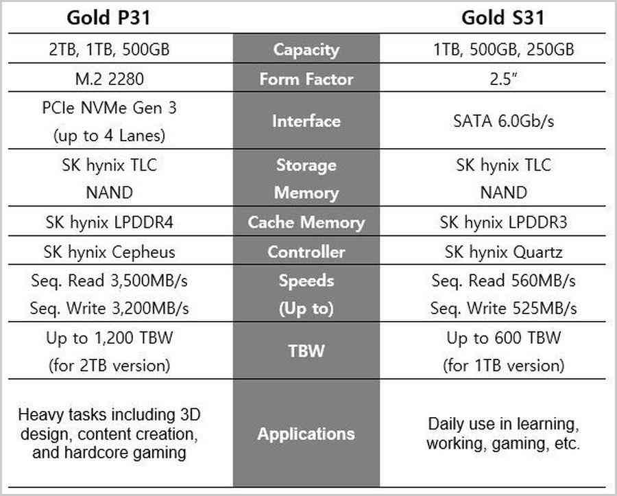 SK Hynix(SK海力士)曾在去年推出了Gold P31系列M.2固态硬盘,当时推出有1TB、500GB这两种容量版本。