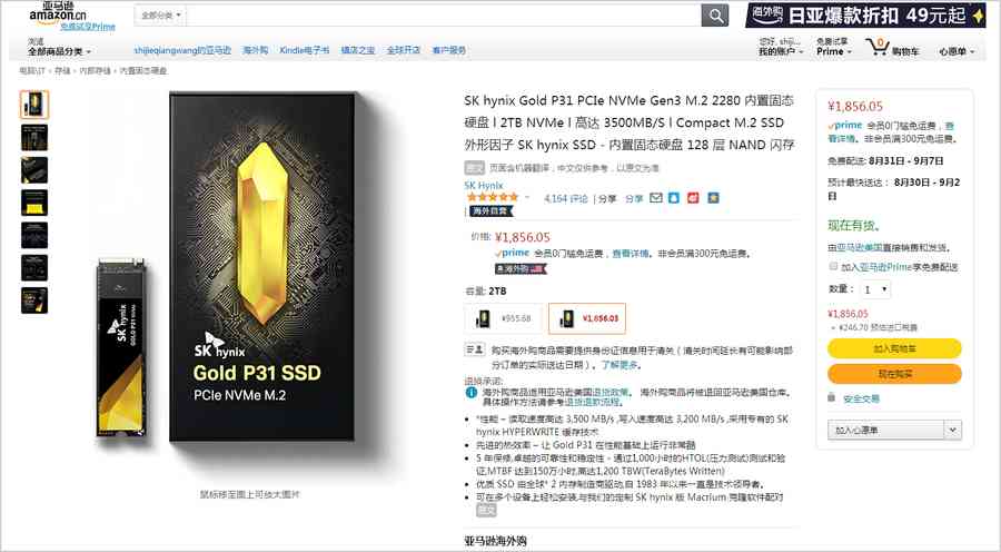 目前SK Hynix Gold P31系列M.2固态硬盘已上架美国亚马逊商城,喜欢的用户们可以通过海淘渠道购买。新出的2TB容量版本售价为1856.05人民币,1TB容量版本售价为955.68人民币。