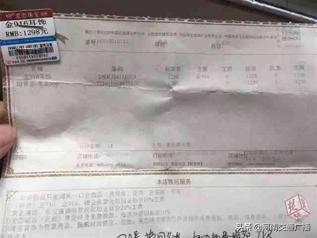 根据胡先生提供的售后服务单,记者看到旧耳环是千足金999,标签价1284元,金916耳饰是1298元。