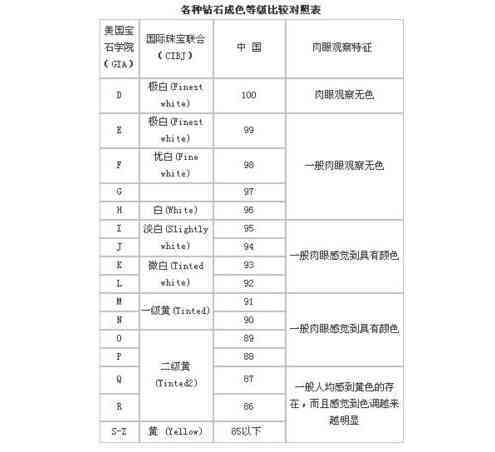 最白的钻石定为D级(即从Diamond的个字母开始)。钻石色泽共分为11个级别,依次分别为:D、E、F、G、H、I、J、K、L、M、N。
