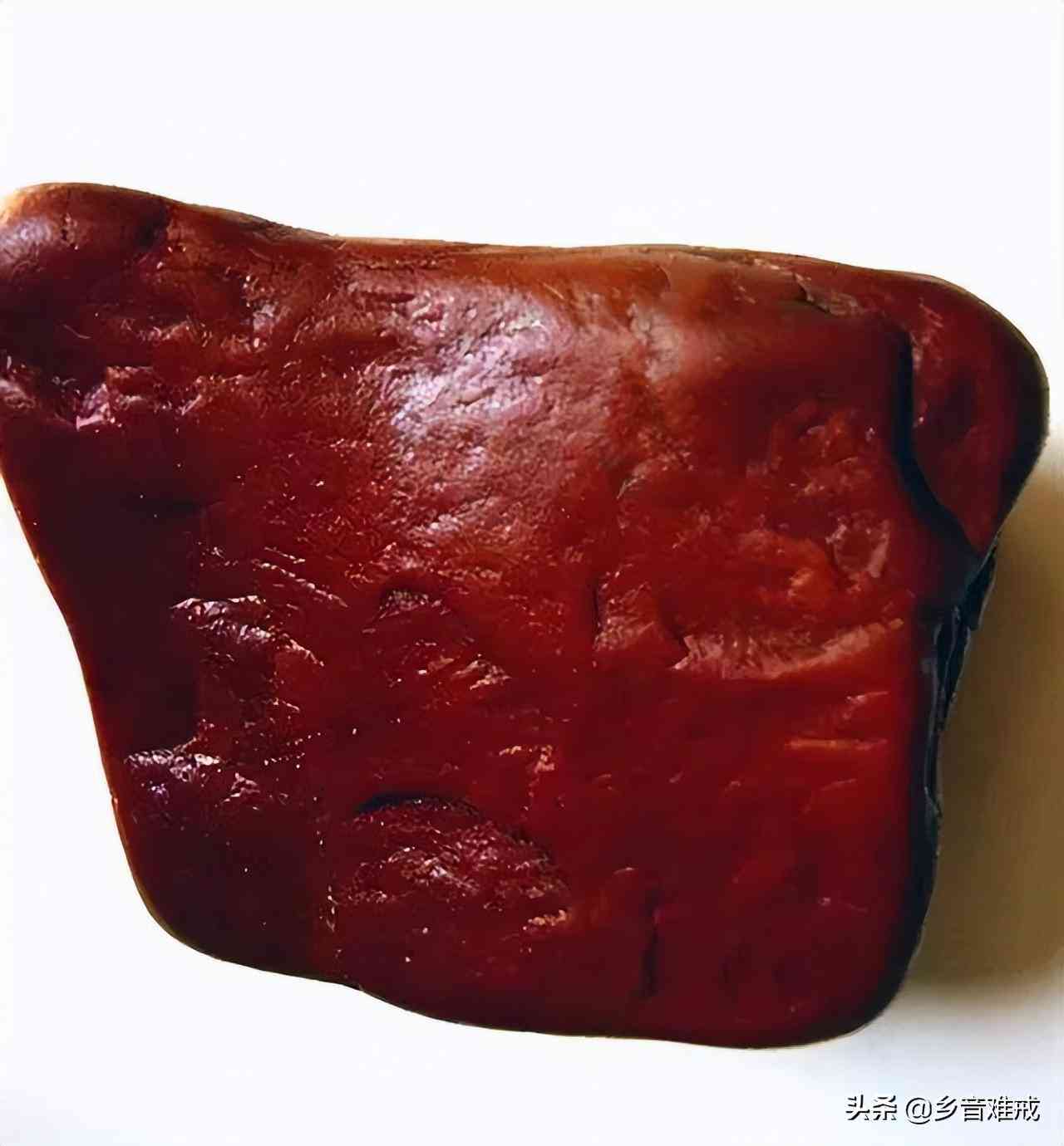 鸡肝石,不算贵,是劣质玛瑙石的一种,不透明、含有大量杂质的玉髓。可呈红色、红褐色、绿色、暗绿色、黑色等颜色。磨光后虽有光泽,但因透明度差,故而被列入了低档玉石。