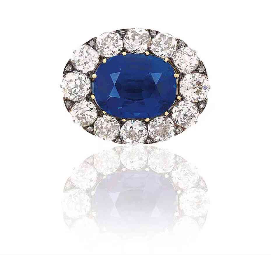 这颗宏伟的 130.50 克拉缅甸蓝宝石打破了 2011 年 3 月蓝色蓝宝石成本的纪录,打破了之前超过 590 万美元的纪录。胸针的古董设计也赋予了它特殊的魅力,因为与许多其他镶钻珠宝项目相比,选择了玫瑰切割,这在当代珠宝设计中并不经常使用。
