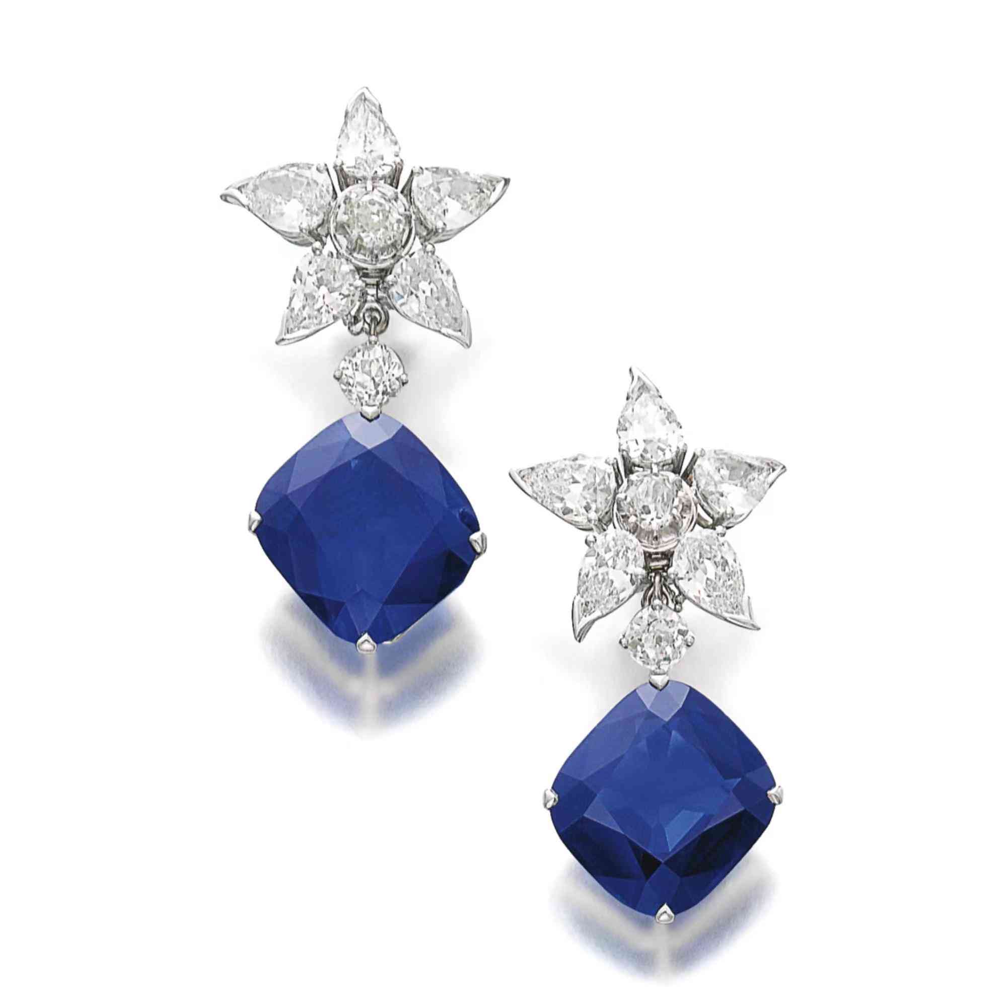 这颗非凡的克什米尔蓝宝石重 27 克拉,未经处理,镶嵌在简单而优雅的底座上,镶嵌着著名珠宝商格拉夫的两颗华丽的梨形钻石。这种蓝宝石的颜色有时在业内被称为“皇家蓝”,并在附录中附有注释,表明它具有非凡的品质,值得特别注意。