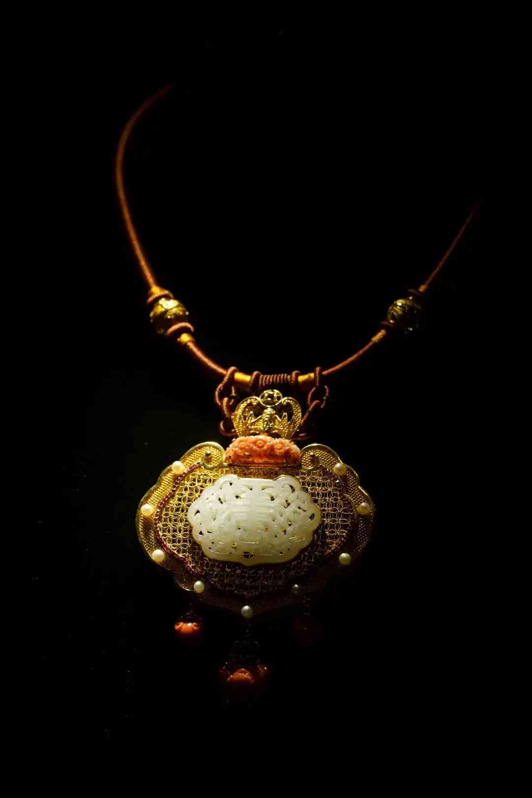 22k金花丝祖母绿项链&18k金花丝珊瑚圆盘吊坠