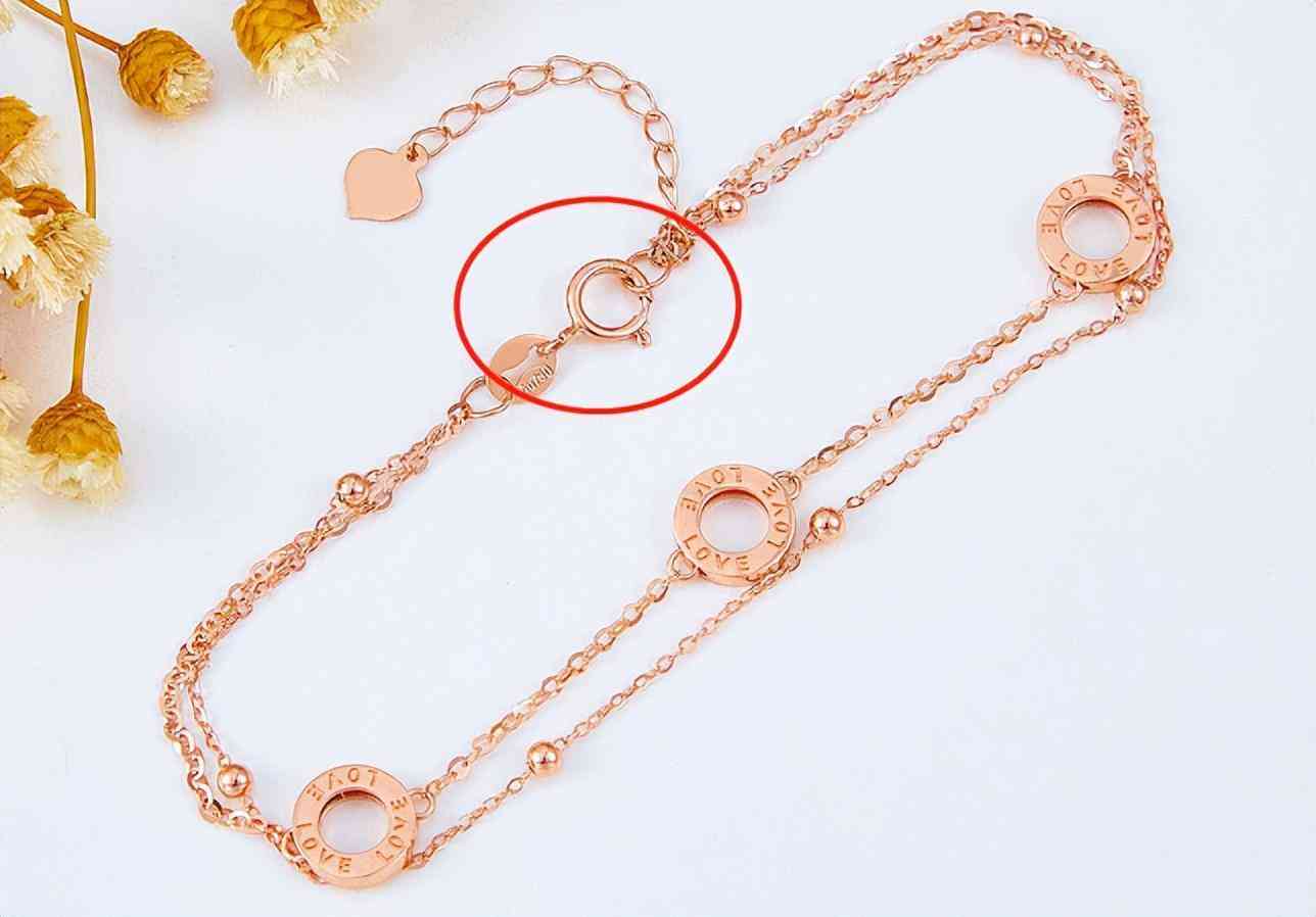 一般来说,正常的K金链子用的都是 “弹簧扣” ,它是通过装有弹簧的机关来控制接扣的开合,方便佩戴。