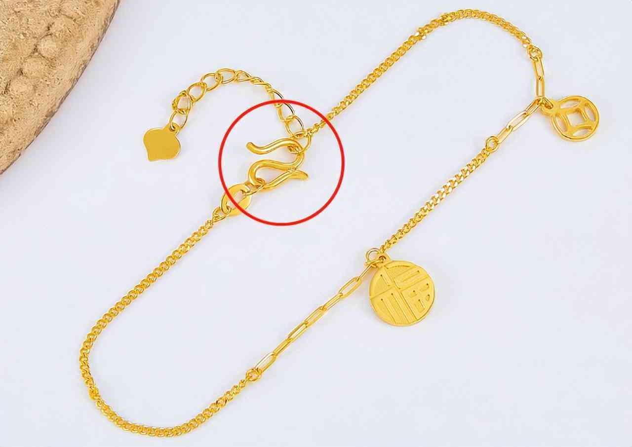 S扣多用在黄金手链上,S扣是一边可开口的搭扣,另一边被焊接牢固,这样可以防备项链滑脱。