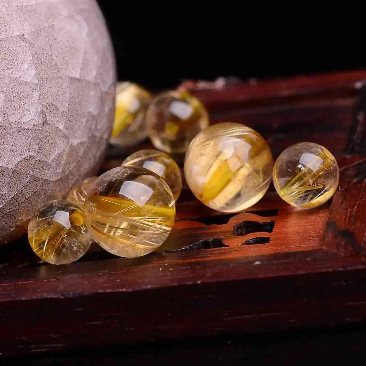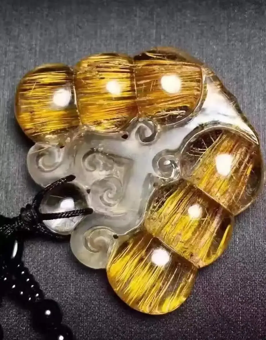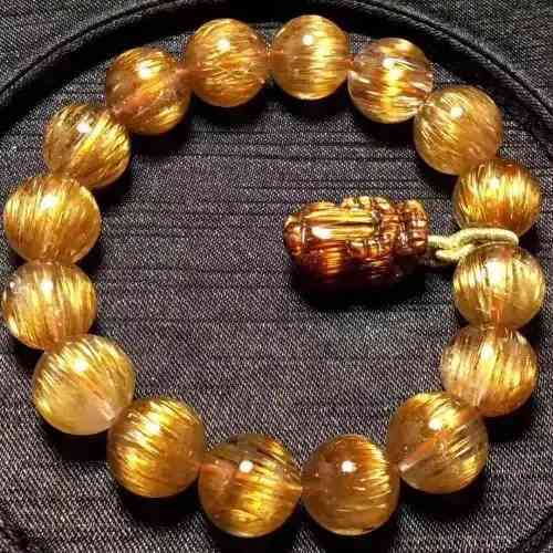 内部的包裹物是金红石的,那么发晶的发丝就会是那么金色的光泽,就像是外国女孩子的金发一样闪闪发光,这就是金发晶,正因为金发晶的颜值非常高,所以又有维也纳发晶的美丽的名字,金发晶的光泽明亮,金光闪闪,如果内部的发丝比较具有方向性,那么就是顺发,而这些发丝又多又密,形成一种类似于板状的形状,那么就是钛晶,经过人工的特殊加工之后,还会产生猫眼的效果。