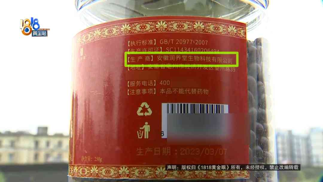 杜先生说,他收到货时,除了快递箱之外,就只有这三个透明的塑料罐子。罐体上贴着标签,上面并没有关于调理身体、肠胃等介绍功效的文字,中间用较大的字体写着,“枳实导滞丸”,条形码上方有个注意事项,说是本产品不能代替药物。生产商是安徽亳州的一家企业,记者在市场监管部门的网站上,查询了这家企业的生产许可证,没有生产药品的资质。