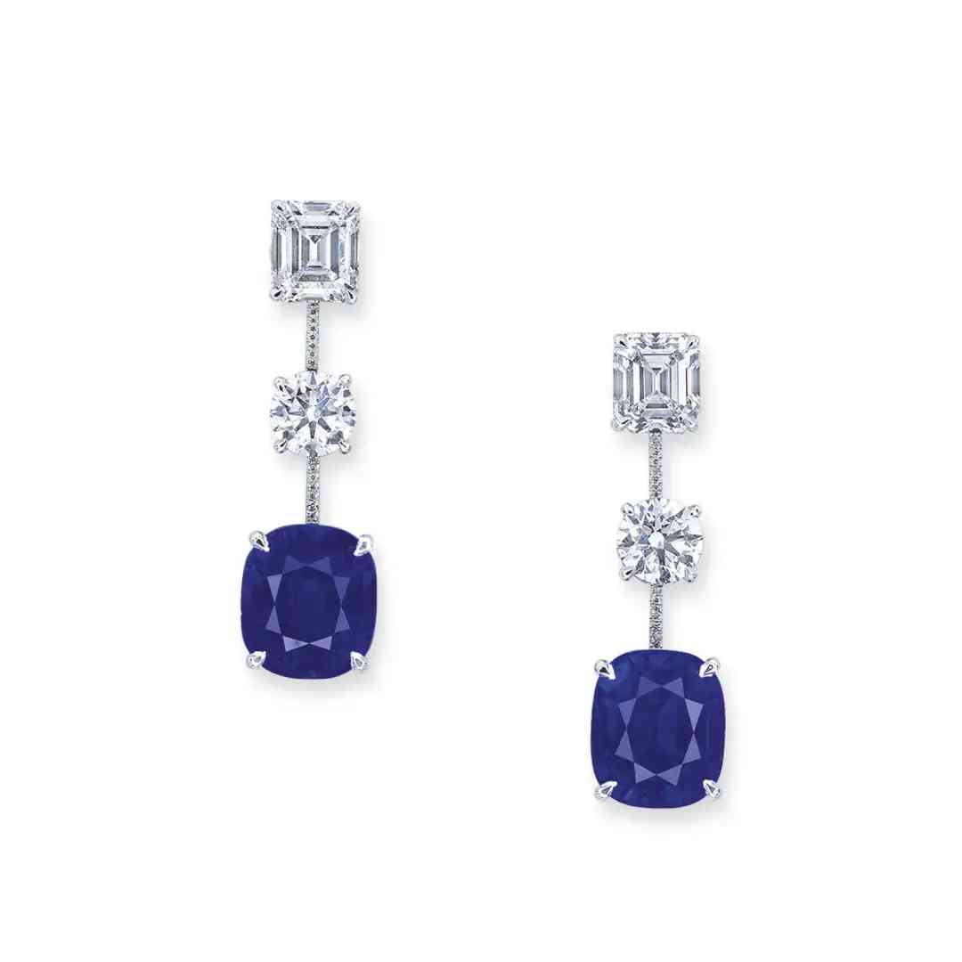 耳环两颗主石分别为重8.93及8.76克拉的克什米尔天然皇家蓝蓝宝石,配镶钻石。最终成交价为 24,850,000港元(每克拉181,007美元)。