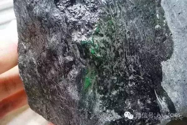 【1】、大玉石原料擦小口,口口见绿时要小心。皮上表现一般时应以低价的砖头料标准来购买。