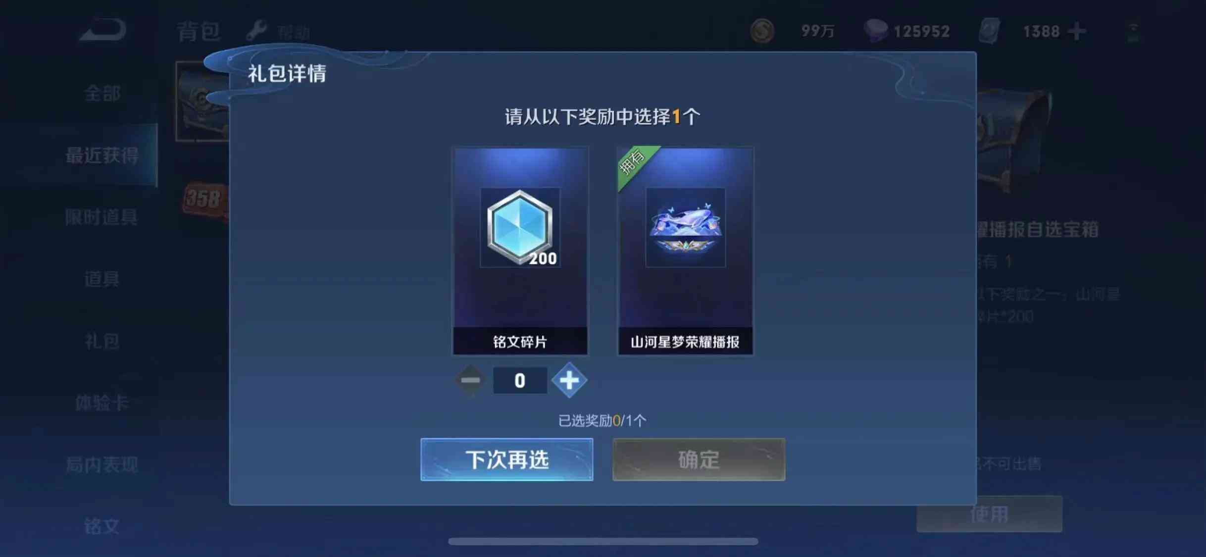 最后一个箱子是抽满10次给山河星梦播报,应该大部分玩家都有这玩意,别浪费钻石。(虽然钻石也没用)