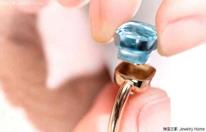 此外,戒指的主石共由57个切面组成,而戒托与主石间则通过2枚金质弹簧撞针来连接,下方搭配金板衬底,远远望去,清透的主石如同悬浮在戒托上一般。(图/文 珠宝之家 张璐)
