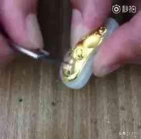 所谓的金镶玉吊坠摆件,随便刮一刮,金粉就能立马掉下来。