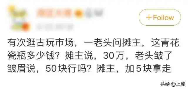 一般情况下,摊主们的原则是“漫天要价,就地还钱”,先开出个天价,三万五万不算多,十万八万刚起步。让人怀疑他的东西,是冒着生命危险从博物馆里偷出来的。