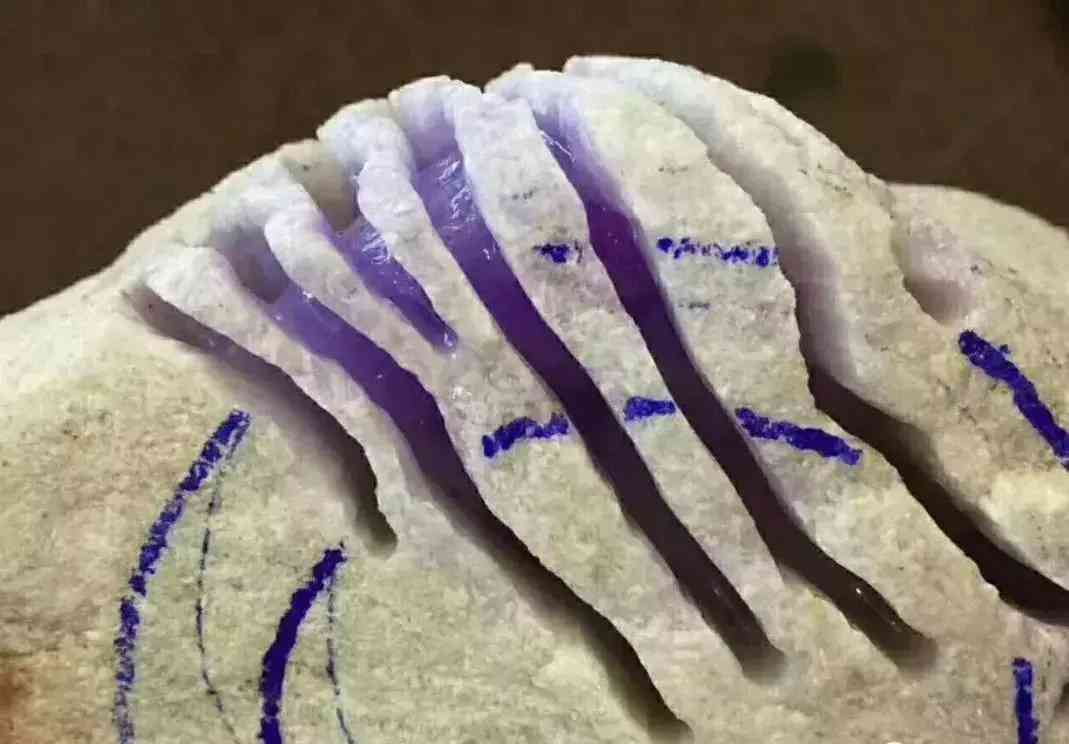 冰紫罗兰翡翠原石在翡翠原石中属于难得一见的好料子,大家看这个颜色就知道, 刚看到我就被惊呆,眼珠子都不转盯着看了半天。