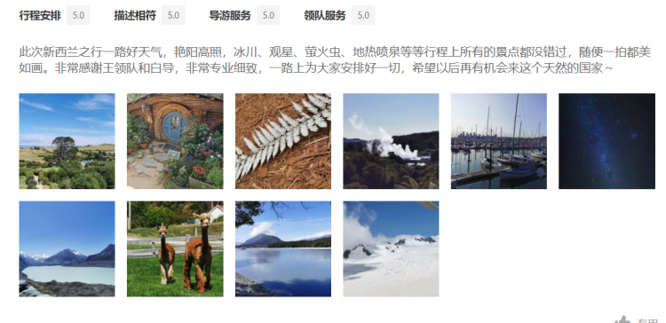 这个行程中安排了穿越冰川、牧羊人教堂暗夜观星、瓦纳卡孤独的树、爱歌顿农场和萌宠亲密接触、萤火虫霍比村双览、毛利文化地热奇景等等。