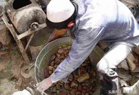 山料切割成大小不等的碎料,放到电动滚筒里滚磨,玉料被磨成表面光亮的籽料形状,形状不自然,没有天然的玉皮和毛孔,裂纹较多,温润感不如天然籽料。在同等品质下,籽料的价格是山料的数倍至数十倍,虽然滚染需要一定的成本,但相对于可能的暴利则属微不足道。