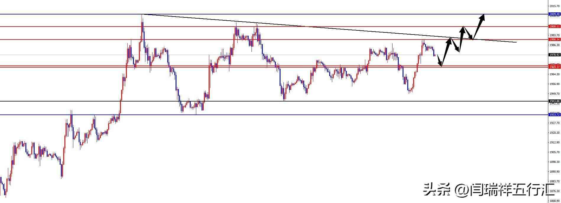 黄金方面,周一黄金价格总体呈现探底回升的状态,当日价格最高上涨至1990.35位置,最低下跌至1949.58位置,收盘于1984.25位置。回顾周一黄金市场表现,早间开盘后价格快速下跌,随后在1950区域获得支撑,我们昨日博文也是明确直接多,随后日内上涨400点空间,日线大阳收尾。目前市场属于震荡上涨,操作上修正后入场,今日我们暂时重点关注1969-1970区间支撑,价格到位后多,上方关注1990-2000-2009区域。