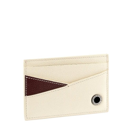 BVLGARI/宝格丽 BVLGARI MAN系列 男女同款象牙白/酒红色粒面小牛皮BVLGARI徽标卡片夹291146