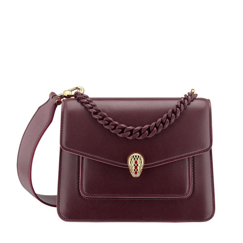 BVLGARI/宝格丽 SERPENTI FOREVER系列 女士小号酒红色纳帕皮翻盖链条蛇头扣单肩斜挎包290985