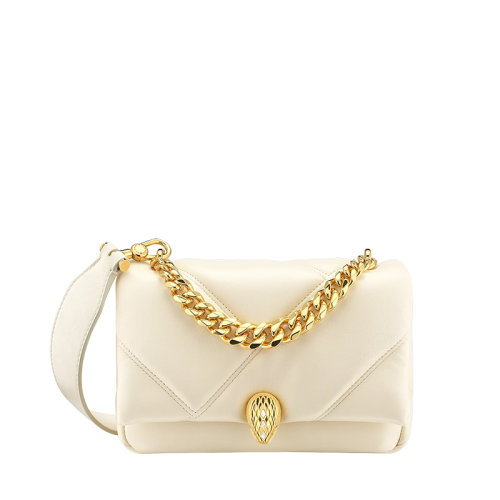 BVLGARI/宝格丽 SERPENTI CABOCHON系列 女士迷你白色绗缝小牛皮蛇头扣单肩斜挎包291086
