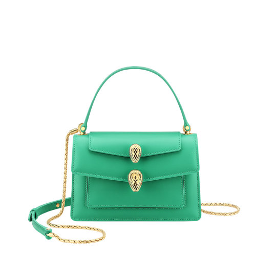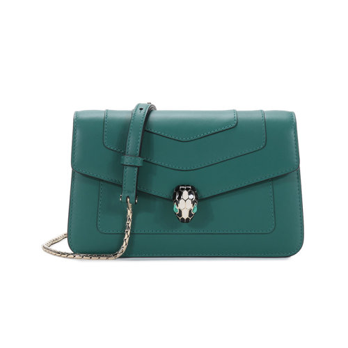 BVLGARI/宝格丽 SERPENTI CABOCHON系列 女士绿色绗缝粒面小牛皮翠绿色珐琅蛇首搭扣单肩斜挎链条包290650