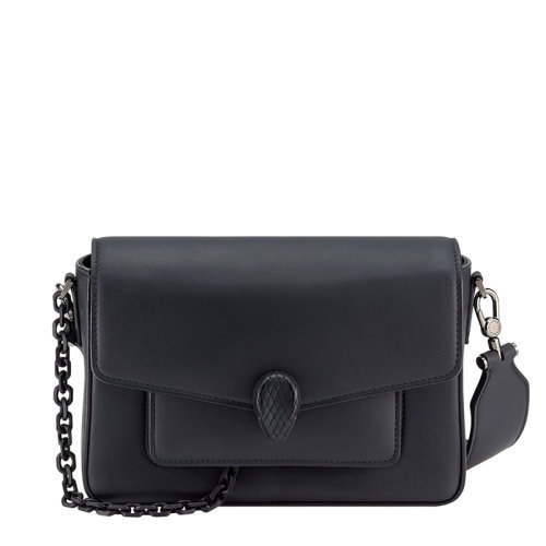 BVLGARI/宝格丽22春夏新款SERPENTI FOREVER系列 男女同款黑色哑光小牛皮蛇头扣配可拆卸肩带斜跨单肩包291851
