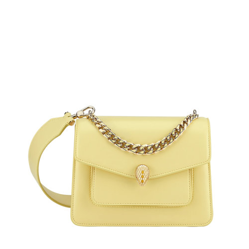 BVLGARI/宝格丽 22春夏新款SERPENTI FOREVER系列 女士小号黄色纳帕皮革蛇头扣链条手提斜挎单肩包291471